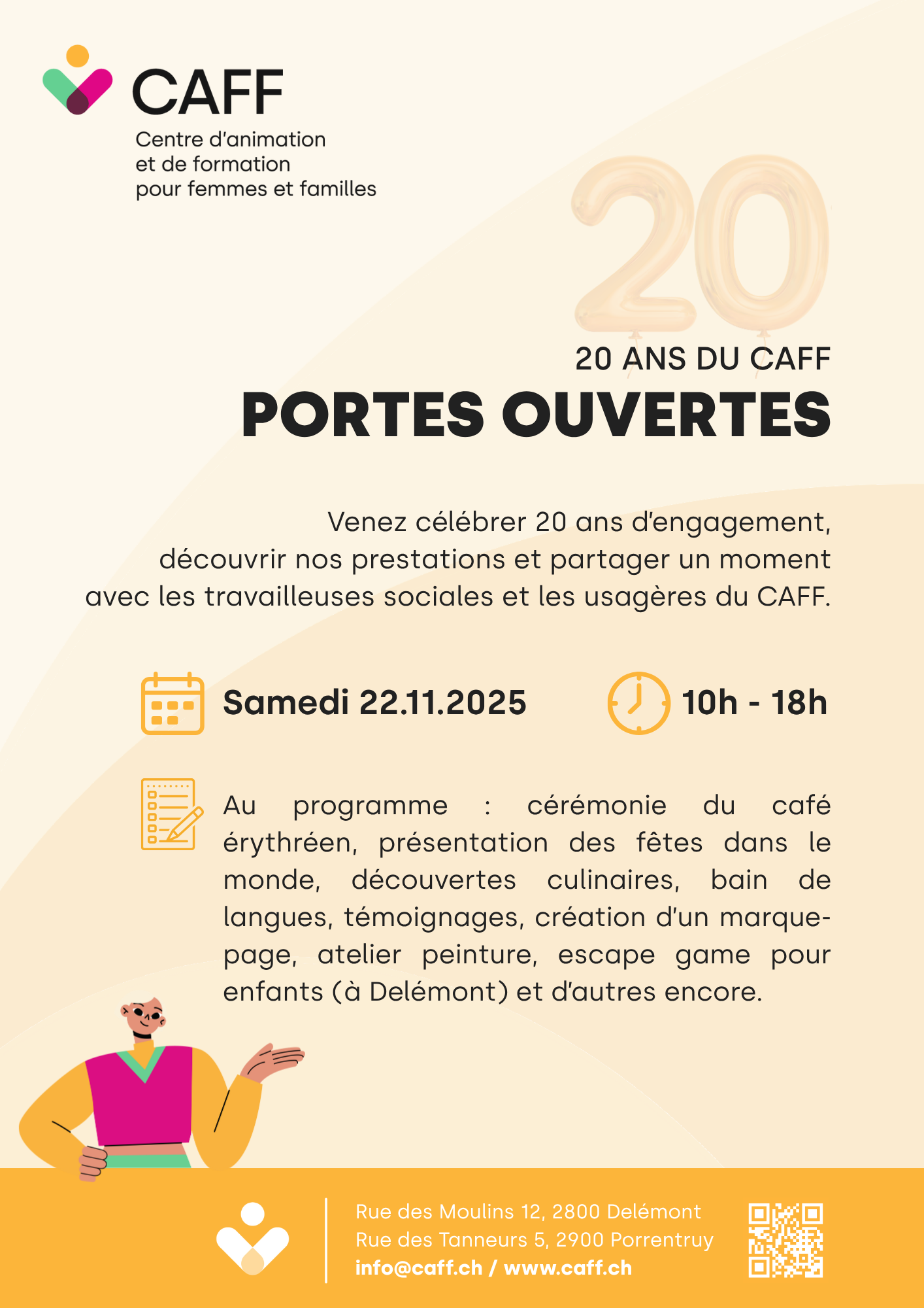 A l’occasion des 20 ans du CAFF, les sites de Porrentruy et Delémont ouvrent leurs portes et vous invitent chaleureusement à venir plonger dans leurs univers.